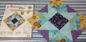 This is the second block in the series for Joann Fabrics Block of the Month “Persian Plum”. This block was a little more technical and has you sewing triangles together prior to joining the halves to form a square.