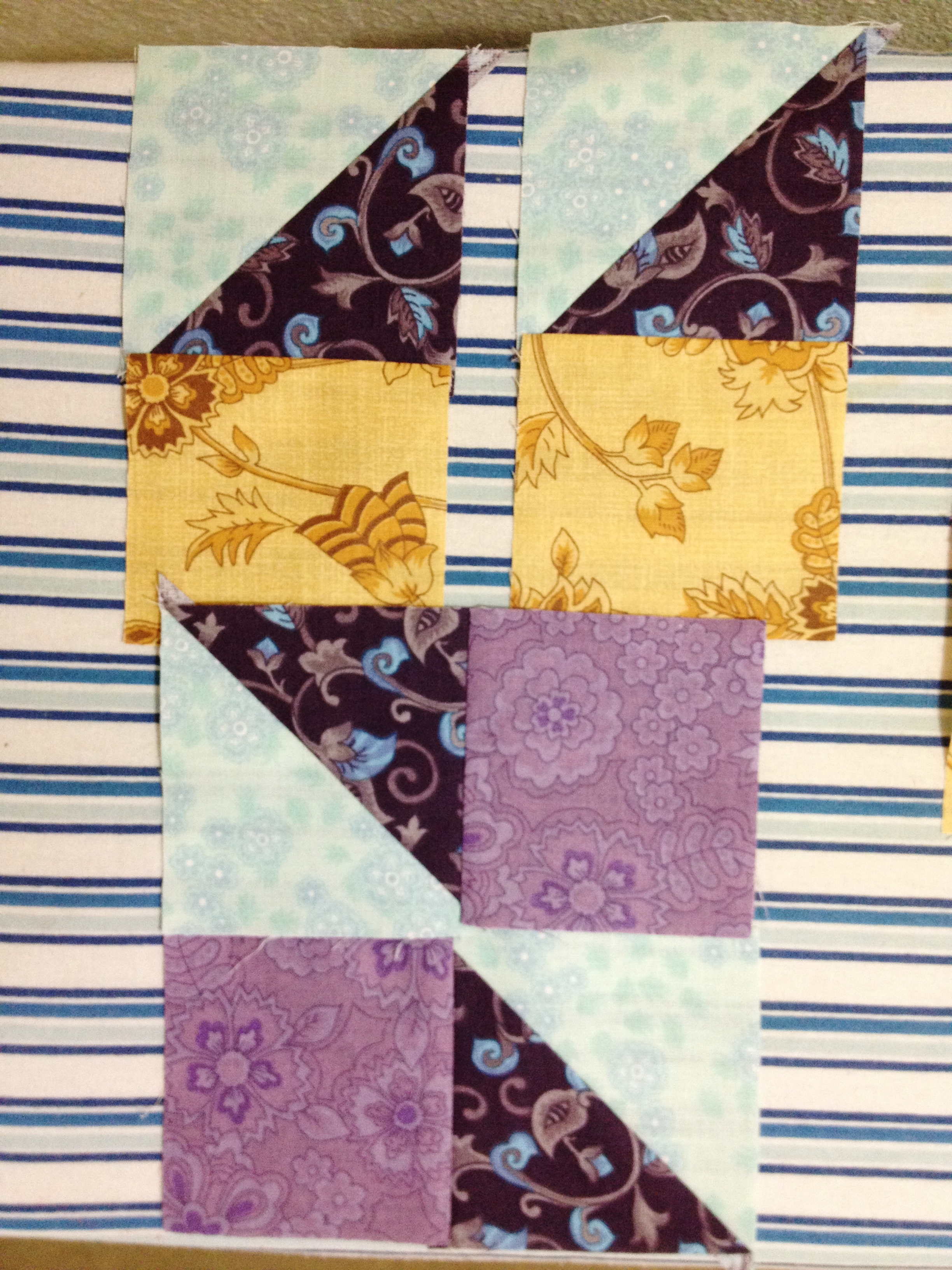 The block is beautiful when finished and I’m very excited to put all of these together to see what the whole quilt will look like.  Here are some pictures of the block going together.