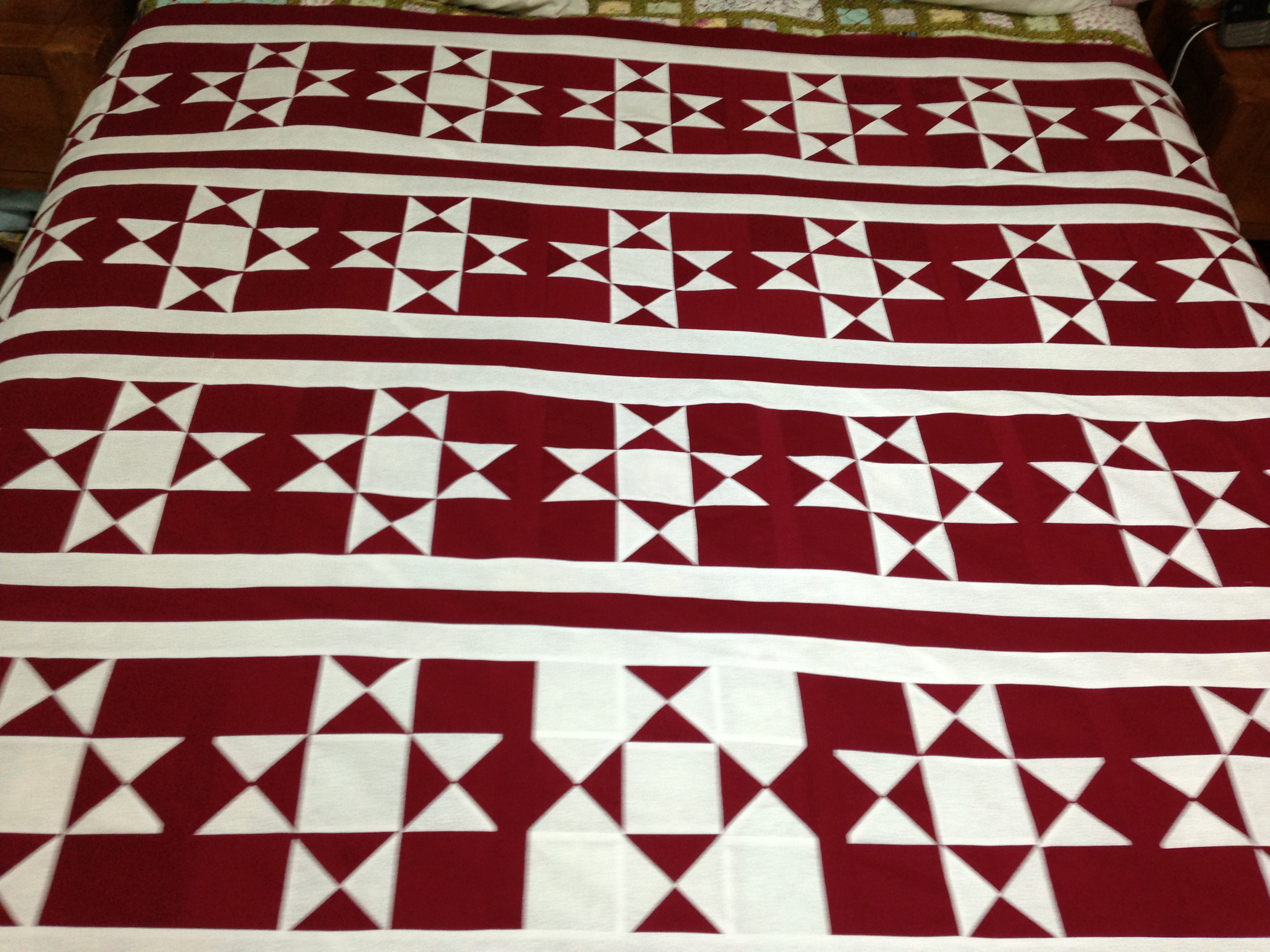 I’ll post another photo once I get the borders sewn on. This currently measures 54″ X 67.5″ without borders.