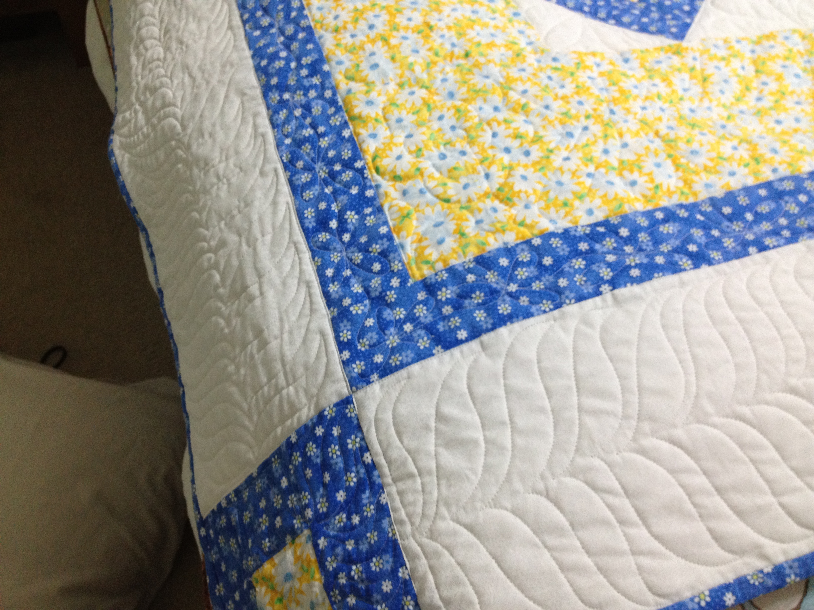 Back to the quilt as it came together. Normally square quilts don’t blow my hair back and as you can see, I sort of painted myself into a corner with the pattern I came up with. Que Sera, Sera… Quilts I’ve found can take on a life of their own. After this one was complete and I did the mad dash the day it was due at Linda’s, the backing almost became a huge issue. Why, oh why, don’t I factor in the size of the quilt when selecting the amount of material I purchase for the backing?!?