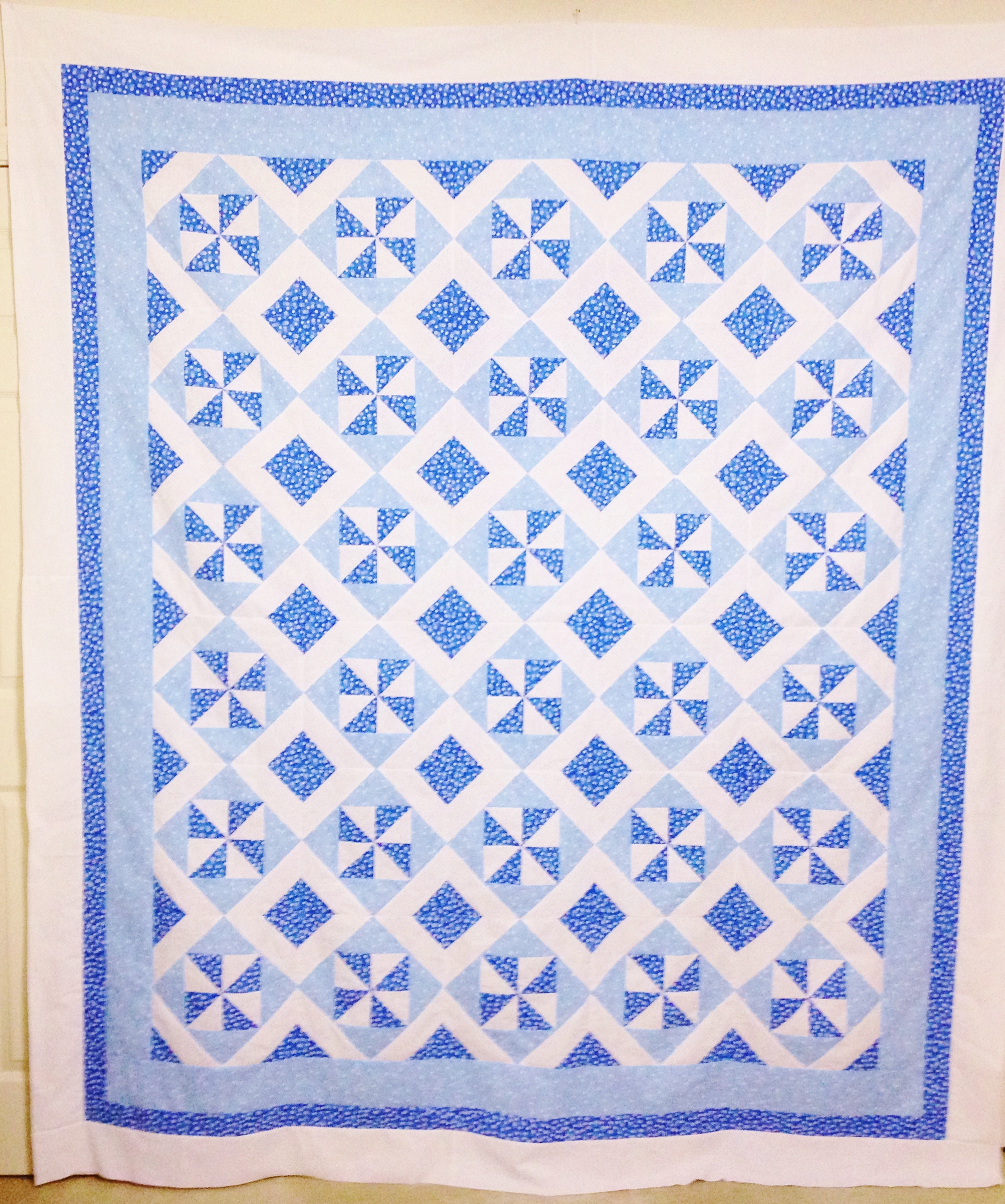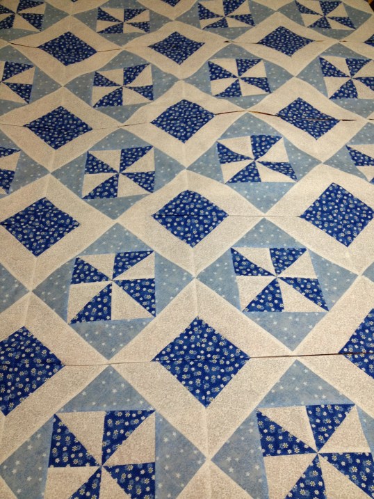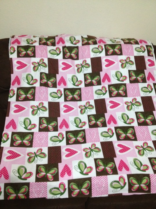 Another baby girl flower quilt, almost complete… this will be the third one of this design. I’m keeping these behind at this point. One is slated to go up on our wall (my wife’s request), but I have no plans for the other two.